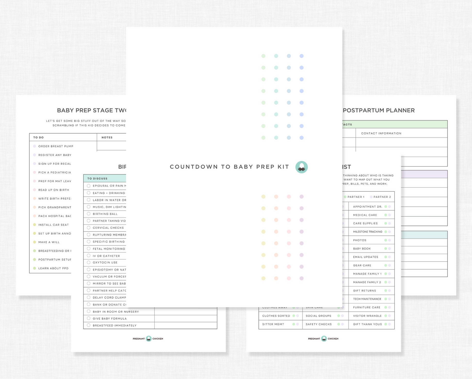 The Countdown to Baby Prep Kit is a series of checklists broken down into each task so you don't feel like you're drinking from a fire hose. You don't have to do it all – and you can definitely go nuts –but it will cover your bases and get you ready to welcome a new baby into your life. The kit is all lists and checklists – no journal, no filler, and no random graphics that use extra paper.